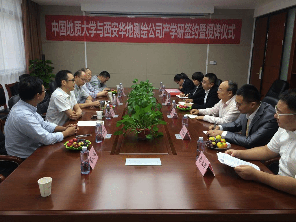 在西安华地测绘科技有限公司,总经理鲁尚强、首席专家亢三焕、营销部经理刘铁岩、财务部经理宋娇艳、人力资源经理秦永军、行政经理任飞霞参与了座谈。座谈会上,总经理鲁尚强代表西安华地测绘科技有限公司致欢迎辞,并介绍了公司的发展概况。窦斌介绍了学校、学院的发展历程,期望双方今后将产学研工作落到实处,预祝取得丰硕成果。德赢AC米兰官网(武汉)与会人员,还针对地质灾害评价、地学大数据空间信息获取、地质勘探数据通信传输等领域的技术问题,为公司出谋划策,展开了深入交流。窦斌副院长与鲁尚强总经理分别代表德赢AC米兰官网(武汉)与西安华地测绘科技有限公司,在产学研合作协议上签字。根据协议,双方将发挥各自优势,围绕工程地质勘察行业改革发展,实现信息资源共享、优势互补,在人才培养、学科建设及科研成果转化等方面开展合作。会后,江广长副书记与鲁尚强总经理进行了揭牌仪式。