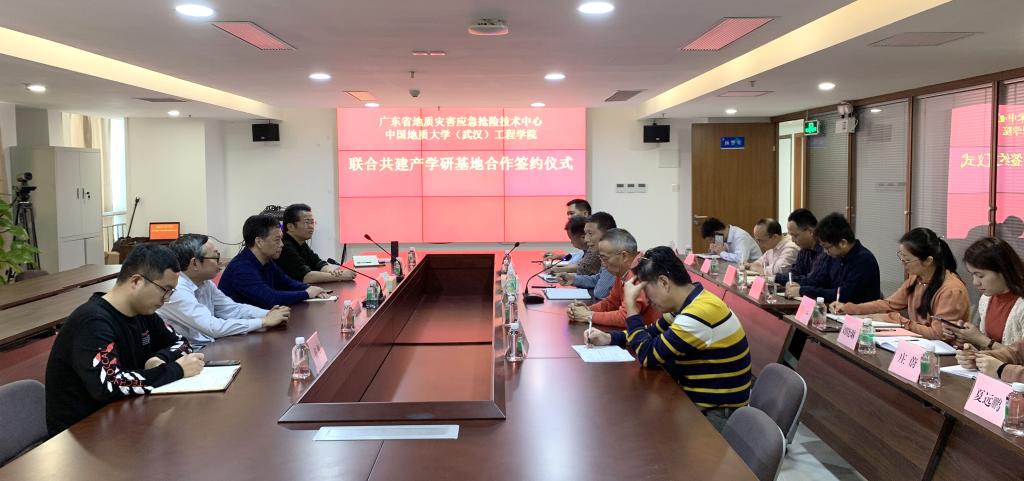 12月18日,德赢官网与广东省地质灾害应急抢险技术中心联合共建产学研基地签约仪式在广东省地质局地质大厦举行。广东省地质灾害应急抢险技术中心主任刘燕辉、党委书记陈政民、副主任陈武等,德赢官网党委书记陈飞、副书记江广长等20余人参加了签约仪式。广东省地质灾害应急抢险技术中心主任刘燕辉主持签约仪式。