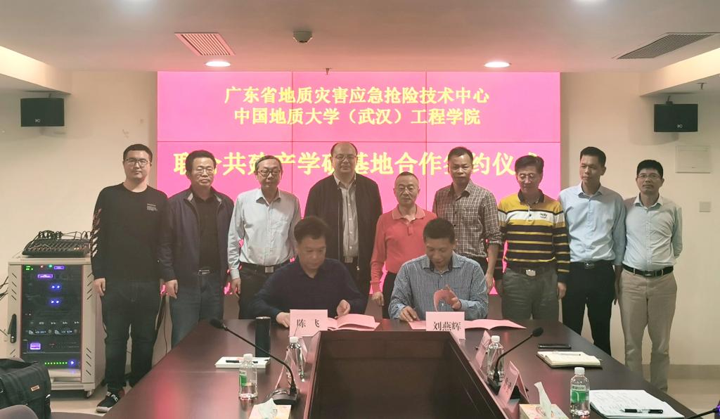 陈飞、刘燕辉签署产学研基地合作协议。根据协议,广东省地质灾害应急抢险技术中心作为德赢AC米兰官网(武汉)德赢AC米兰官网的产学研基地,双方将定期就人才的培训、技术的创新、引进与推广、联合攻关、学生实习等方面开展协商研究。