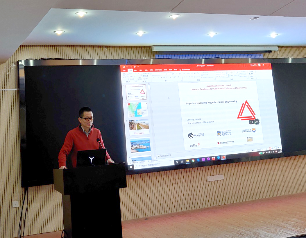黄劲松教授以《Bayesian Updating In Geotechnical Engineering》为题,介绍了贝叶斯理论在岩土工程中的应用。讲解了统计学理论的两个学派:频率派和贝叶斯派的区别,并结合具体案例,展示了用贝叶斯方法更新先验模型和预测未来沉降的流程。同时进行了现场实践教学,演示了如何使用马尔科夫链蒙特卡洛(MCMC)方法解决贝叶斯复杂后验分布问题,并对贝叶斯理论的发展进行了展望。最后与在场师生进行了广泛互动和积极交流。