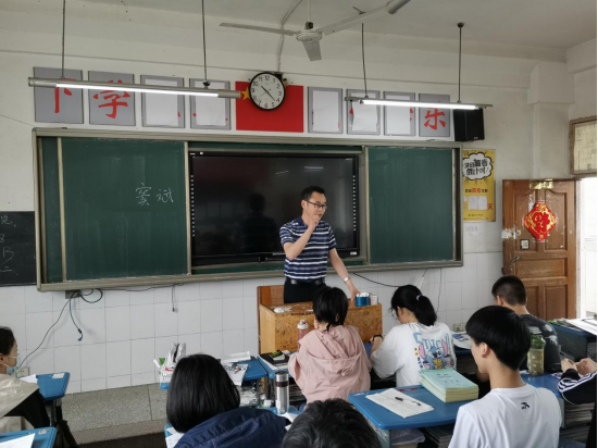 窦斌一行走进广华中学高三课堂。在课堂上大家一起观看了学校招生宣传片,窦斌向同学们介绍了学校的基本情况,鼓励大家认真备考,考出理想的成绩,和同学们相约9月在地大见。