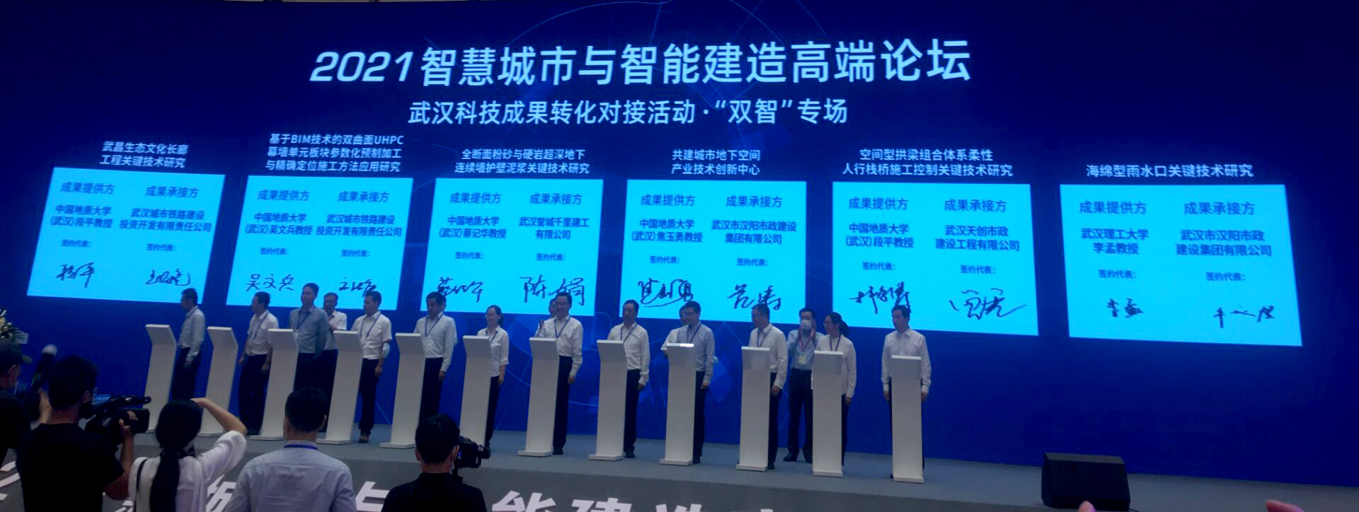 (通讯员:刘浩、张美霞)9月24日,德赢AC米兰官网院长焦玉勇教授应邀率队出席2021智慧城市与智能建造(“双智”)高端论坛。开幕式“武汉科技成果转化对接活动 双智专场”上,焦玉勇带领德赢官网蔡记华、吴文兵、林俊涛、刘浩4位老师分别与武汉市汉阳市政建设集团有限公司、武汉市誉城千里有限公司、武汉市城市铁路建设投资开发有限公司签订了共建技术创新中心、人才培养与科技成果转化合作协议。德赢官网与武汉市相关部门和企业开展深度合作,将为湖北省“一主引领、两翼驱动、全域协同”的区域发展布局,和武汉建设“宜居城市、韧性城市、智慧城市、绿色城市、人文城市”的重大需求提供技术和人才支持。