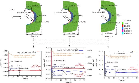 研究表明,地层束缚水饱和度高低会显著影响钻井液侵入状况,在该站位钻进时,采用合适的钻井液温度,出现井壁坍塌的可能性不大,但易发生因井周应力释放出现的卡钻事故(图2);钻井液温度是影响井周水合物分解和管线内二次水合物生成的主控因素(图3);在没有发生明显钻井液滤失的情况下,在安全密度窗口范围内增加钻井液的密度和盐度仅会轻微地促进水合物分解,但分解造成的力学强度下降对井壁稳定的影响要远远弱于钻井液的护壁作用;通过对比分析可知,水平井可优先布设在高水合物饱和度层,这样更有利于维持井壁稳定,当其布设在低水合物饱和度层时,在适宜的钻井液温度下,在井筒形成低渗泥皮有助于保持井壁稳定。