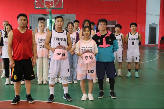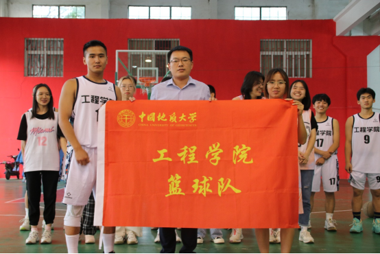 校团委挂职副书记、安全系教工党支部书记、工程教工篮球队队长周克清为篮球队授旗,新校区建设指挥部副处长、德赢AC米兰官网2004级土木工程毕业生陈胜和德赢AC米兰官网工岩系博后郑罗斌为男队和女队颁球。