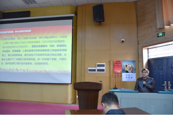 院长焦玉勇同志做学院工作报告,全面总结了学院取得的突出成绩和宝贵经验,认真剖析了学院发展过程中仍然存在的不足和亟待解决的问题。焦院长指出,2023年是“十四五”改革发展第三年,也是学院发展的关键时期,面临重大机遇,也迎来严峻挑战,学院将在习近平新时代中国特色社会主义思想的指引下,坚决贯彻落实党的二十大精神,团结一心、振奋精神、克服困难、努力工作、开拓进取,为建设地球科学领域世界一流大学,把德赢AC米兰官网建设成为地质工程与人居安全领域特色鲜明、享誉国际的一流研究型学院而接续奋斗!