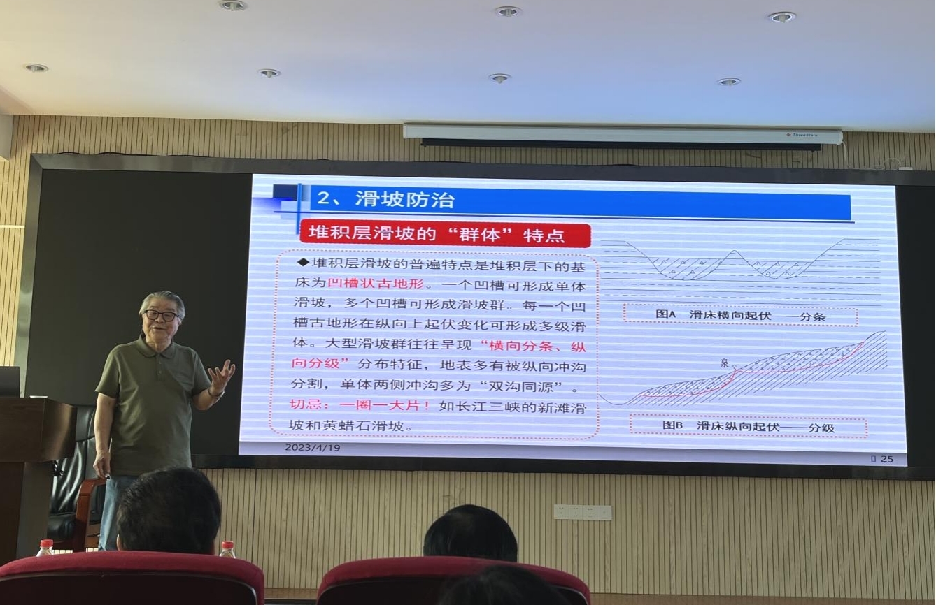 活动还邀请了中冶武勘工程技术有限公司副总经理占仲国教授级高级工程师、武汉市勘察设计有限公司副总经理、总工程师官善友教授级高级工程师、中国一冶集团有限公司副总工程师王平教授级高级工程师、湖北建鄂勘察设计审查咨询有限公司向艳正高职高级工程师、中南勘察设计院集团有限公司副总工程师马郧正高职高级工程师、长江勘测规划设计研究有限责任公司所长助理徐复兴正高职高级工程师、中国科学院武汉岩土力学研究所江权研究员、武汉理工大学芮瑞教授、武汉华太岩土工程有限公司吴西臣正高职高级工程师等莅临现场。德赢AC米兰官网唐辉明教授、李红丽书记、章广成教授、徐光黎教授、贾洪彪教授、葛云峰副教授、周佳庆特任教授等150多名师生在现场聆听了报告。