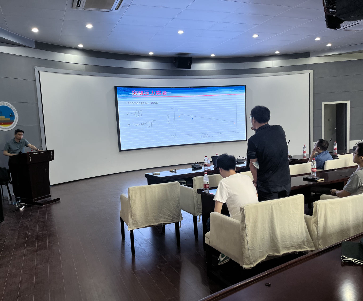 潘哲君教授作了题为“页岩储层油气运移实验及机理研究”的学术报告。页岩油气作为保障我国能源安全的重要领域,其运移规律是决定页岩油气产量的重要因素。潘教授首先介绍了目前团队的研究人员以及实验室建设情况,展示了团队自主研发的渗透率设备、支撑剂运移及沉降等相关设备;随后基于页岩储层储集空间和渗流特性复杂性着重介绍了油气在页岩储层中的扩散和渗流实验的要点和难点,讨论了油气在页岩中流动的机理;最后结合北美页岩油开发支撑剂方案中对支撑剂的导流能力研究进一步阐述。潘教授指出,页岩油气开发过程中涉及不同尺度孔隙空间中多相态流体的流动,需要在实验仪器设计和实验方法上的进一步提升以更精确的测量,为机理研究提高准确的实验数据。