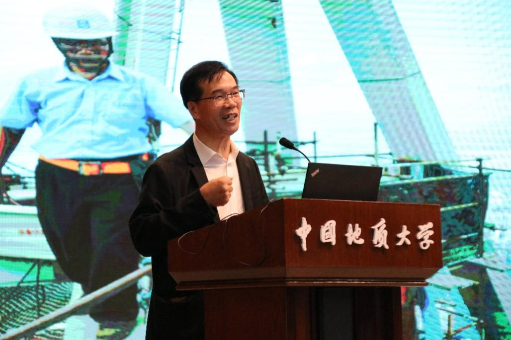 湖北道泽勘测设计院有限公司总工程师谢昭宇先生作为优秀校友代表发言。他以《路虽远,行则将至;事虽难,做则必成》为题,如数家珍地细数自己在地大求学之路上的点点滴滴,详实生动地介绍自己职场奋进之路上的酸甜苦辣,他从学历、注册、职称、创新、创业等五个方面给予学弟学妹们最真诚的建议,强调要锻炼强健体魄,勇敢应对生活挑战;要夯实专业知识,积极应对学业挑战;要参加实践活动,提前做好职场准备。谢校友的分享真诚而有趣,更加激发了同学们探索大学生活的热情。