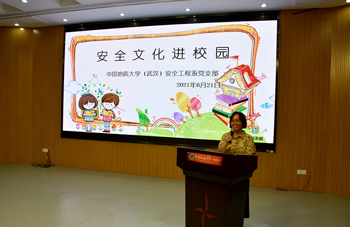 (通讯员 周克清)为培养中小学生的公共安全意识,提高中小学生面临突发安全事件自救自护的应变能力,结合党史学习教育扎实推进“我为群众办实事”实践活动,引导党员干部立足本职工作全心全意为师生群众服务。德赢AC米兰官网安全工程系党支部在院党委书记李红丽同志的带领下,于2021年6月21日下午走进德赢AC米兰官网(武汉)附属学校开展安全文化进校园实践活动。德赢AC米兰官网(武汉)附属学校总支书记彭冠军、副校长刘立新、部分老师和小学部四年级全体学生参与了本次活动。