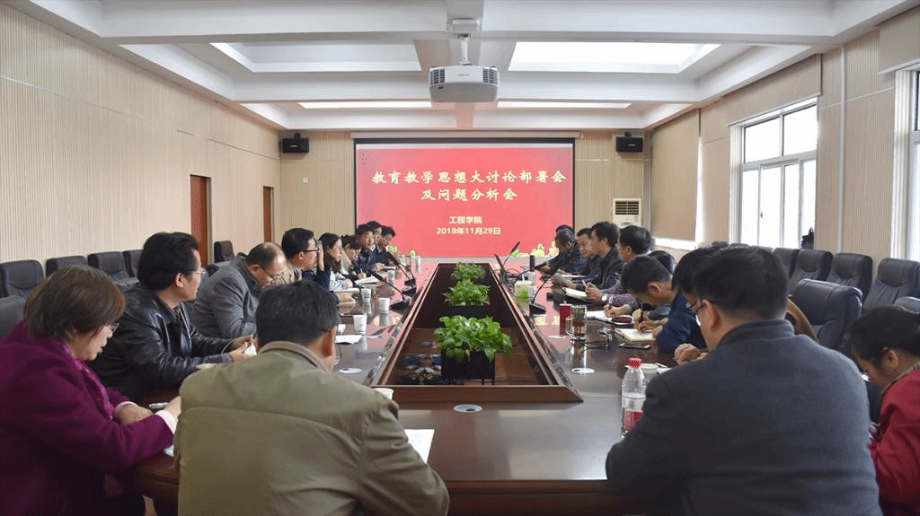 德赢AC米兰官网于2018年11月29日下午14:00在工程楼315会议室,召开了“德赢AC米兰官网教育教学思想大讨论部署会及问题分析会”。参加会议的有学院党政领导和各系主任、支部书记及学科带头人。会议由党委书记陈飞主持,此次会议目的是提高认识,统一思想,落实行动。