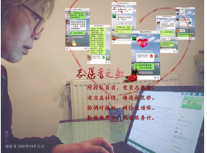 杨冠青同志现任德赢AC米兰官网党委组织委员,党建工作卓有成效。她在疫情发展的高峰(2月份),克服各方亲人患重疾的重重困难,并不顾个人年龄较大和容易被感染的事实,挺身而出主动报名参加学校社区志愿者,协助学校和社区传递中央和地方关于疫情防控的重要信息,发放物资,照顾老人,做好本职工作和志愿者工作,积极宣传报道疫情期间先进事迹,传递正能量,稳定了小区居民情绪,保障了他们的正常生活,守护了平安。