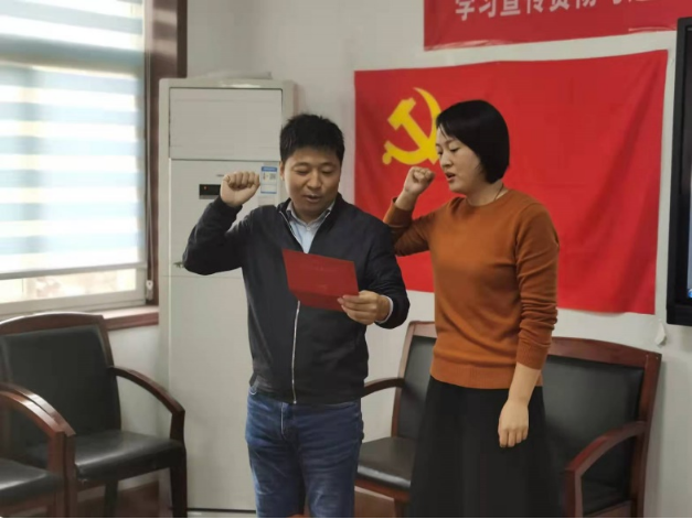 图3 吴琼、李德营带领与会人员重温入党誓词